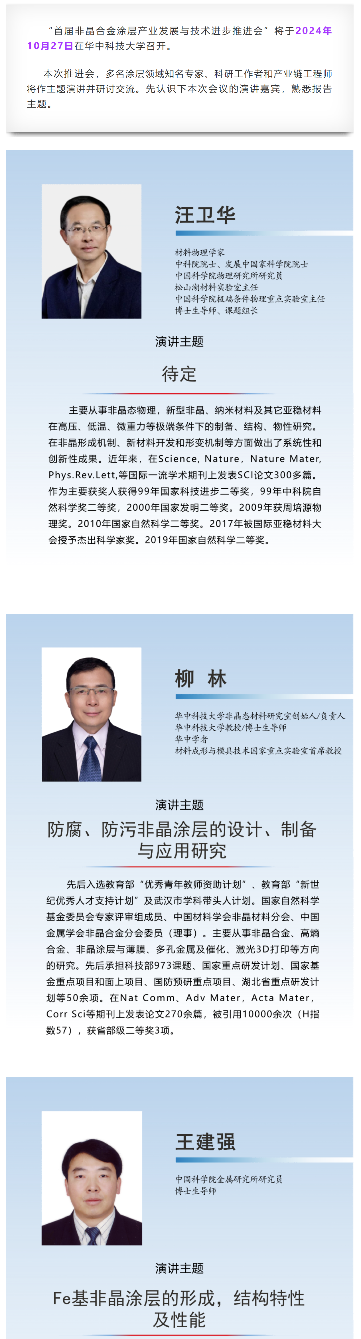 专家简介丨首届非晶合金涂层产业发展与技术进步推进会即将在武汉召开