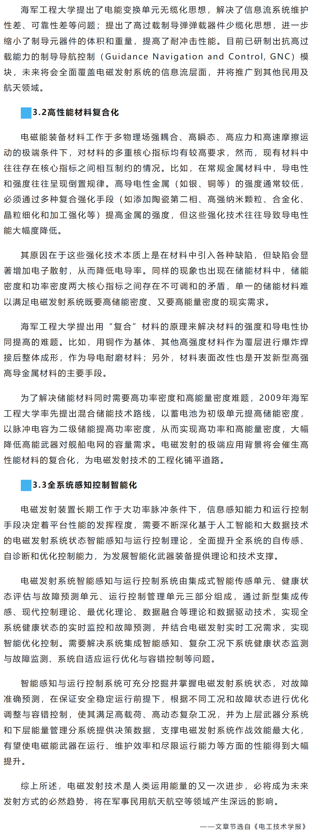 马伟明:电磁发射技术的研究现状与挑战