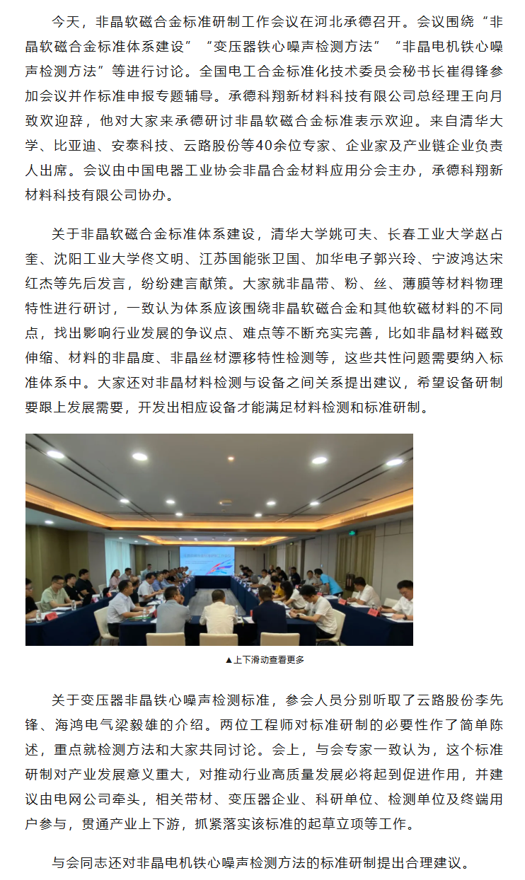 非晶软磁合金标准研制工作会议在承德召开