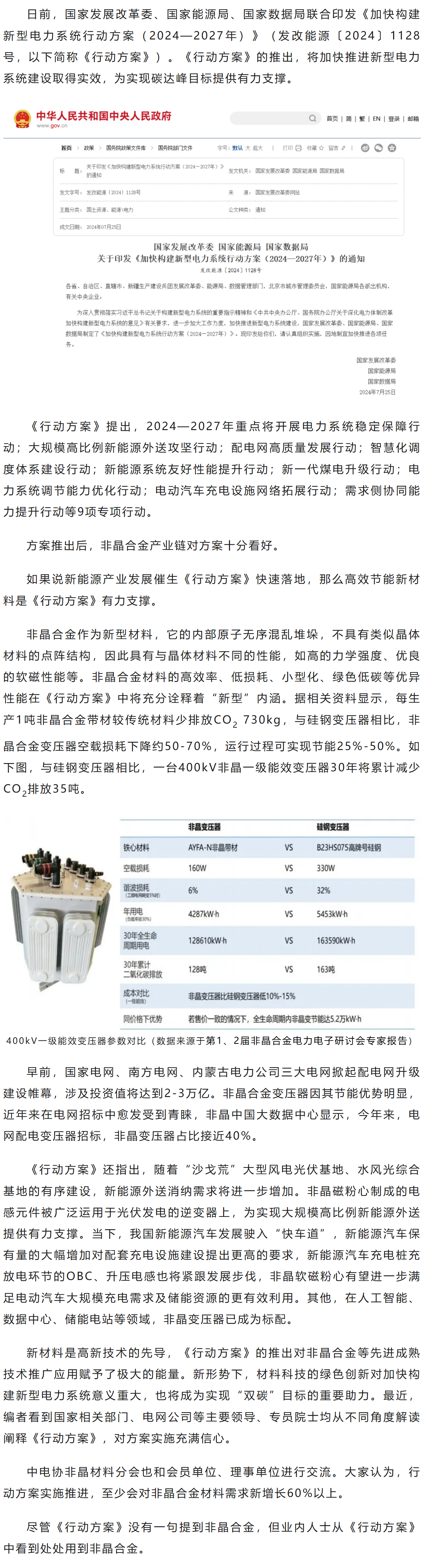 新型电力系统行动方案出炉!没有一句提到非晶材料好,却处处对非晶合金材料示好