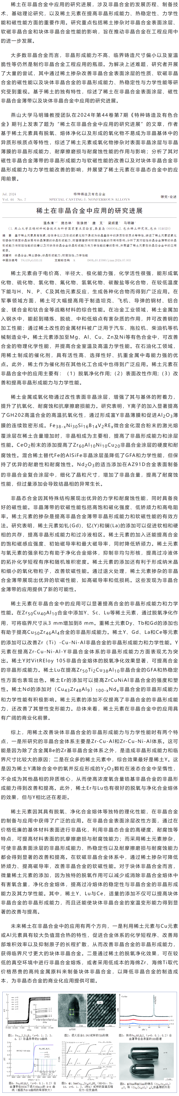 燕山大学马明臻教授最新综述!稀土在非晶合金中应用的研究进展