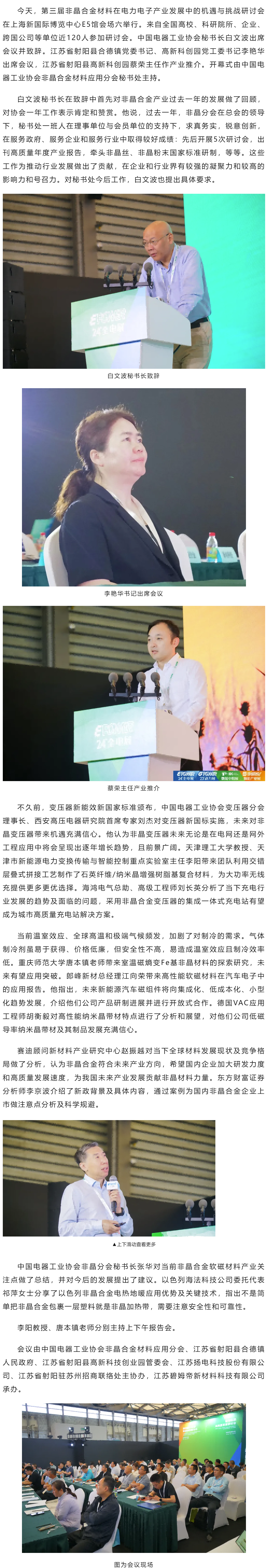 第三届非晶合金材料在电力电子产业发展中的机遇与挑战研讨会在上海召开