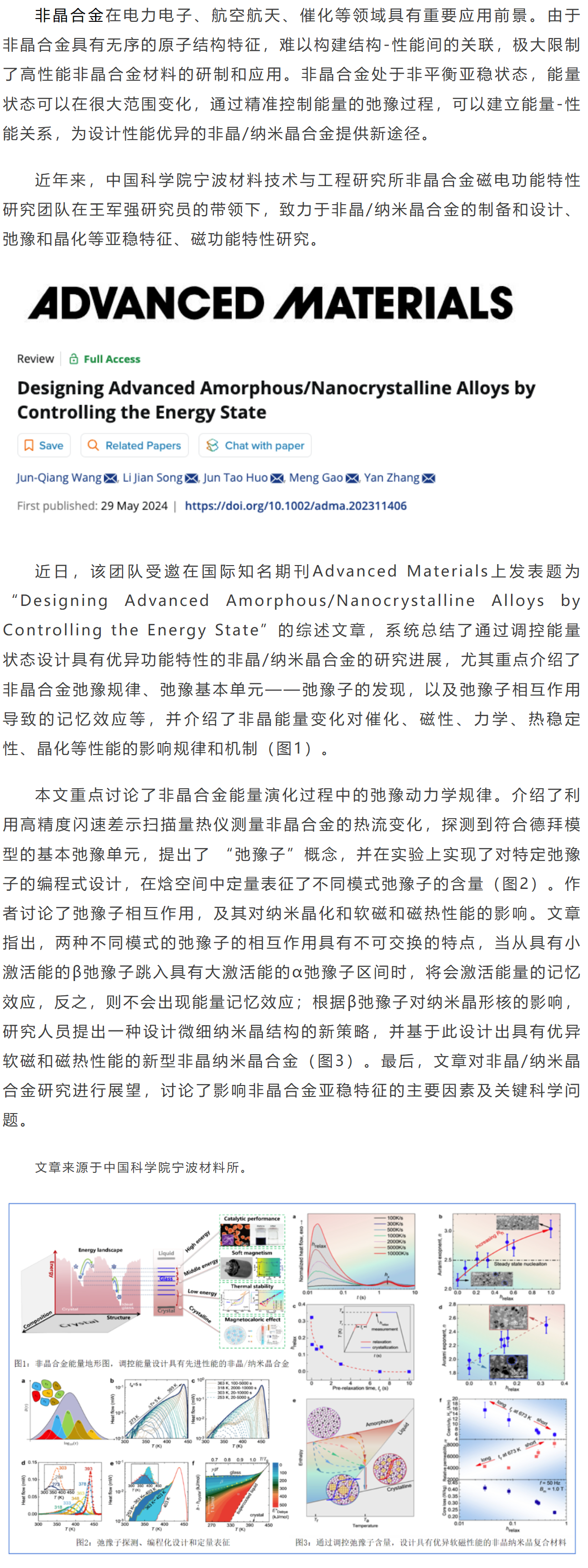 《Adv. Mater.》王军强等工作:基于能量调控设计具有优异性能的非晶/纳米晶合金