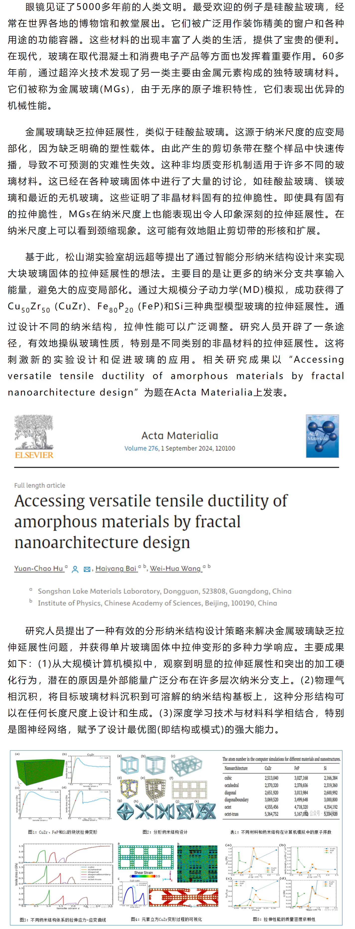 《ACTA MATER》胡远超等工作:利用分形纳米结构设计获得非晶材料的大拉伸延展性