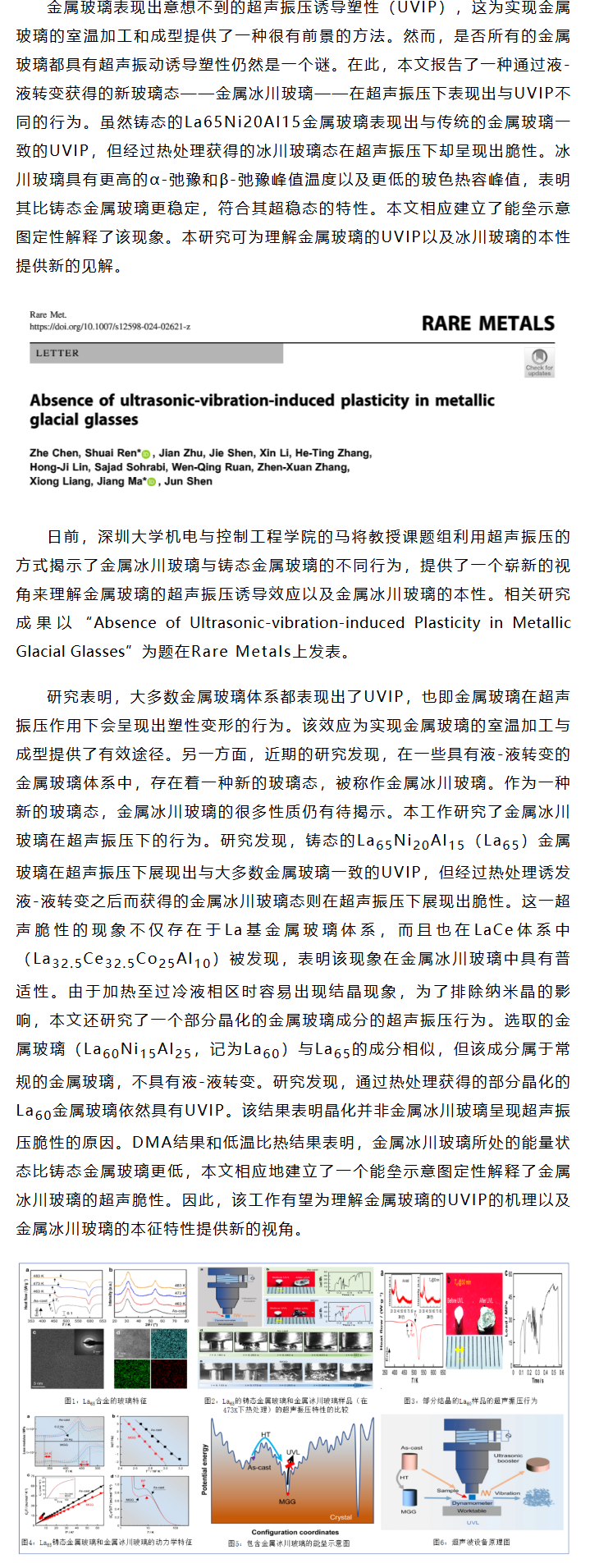《Rare Metals》马将等工作:金属冰川玻璃中不存在超声振动诱导的塑性