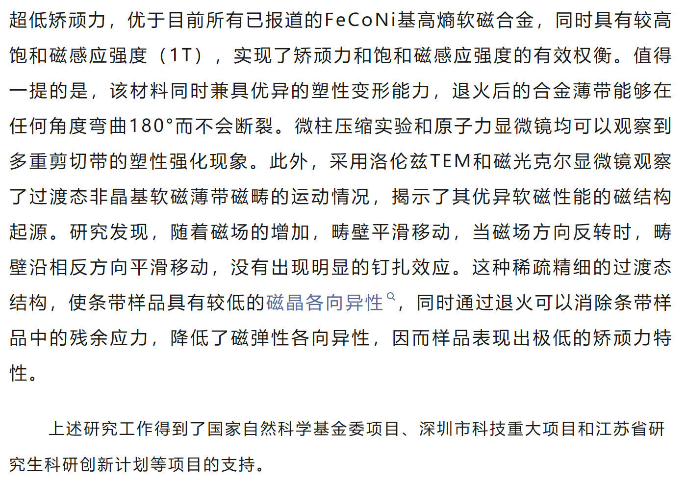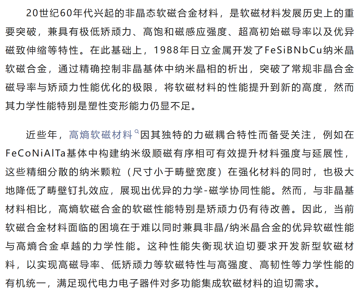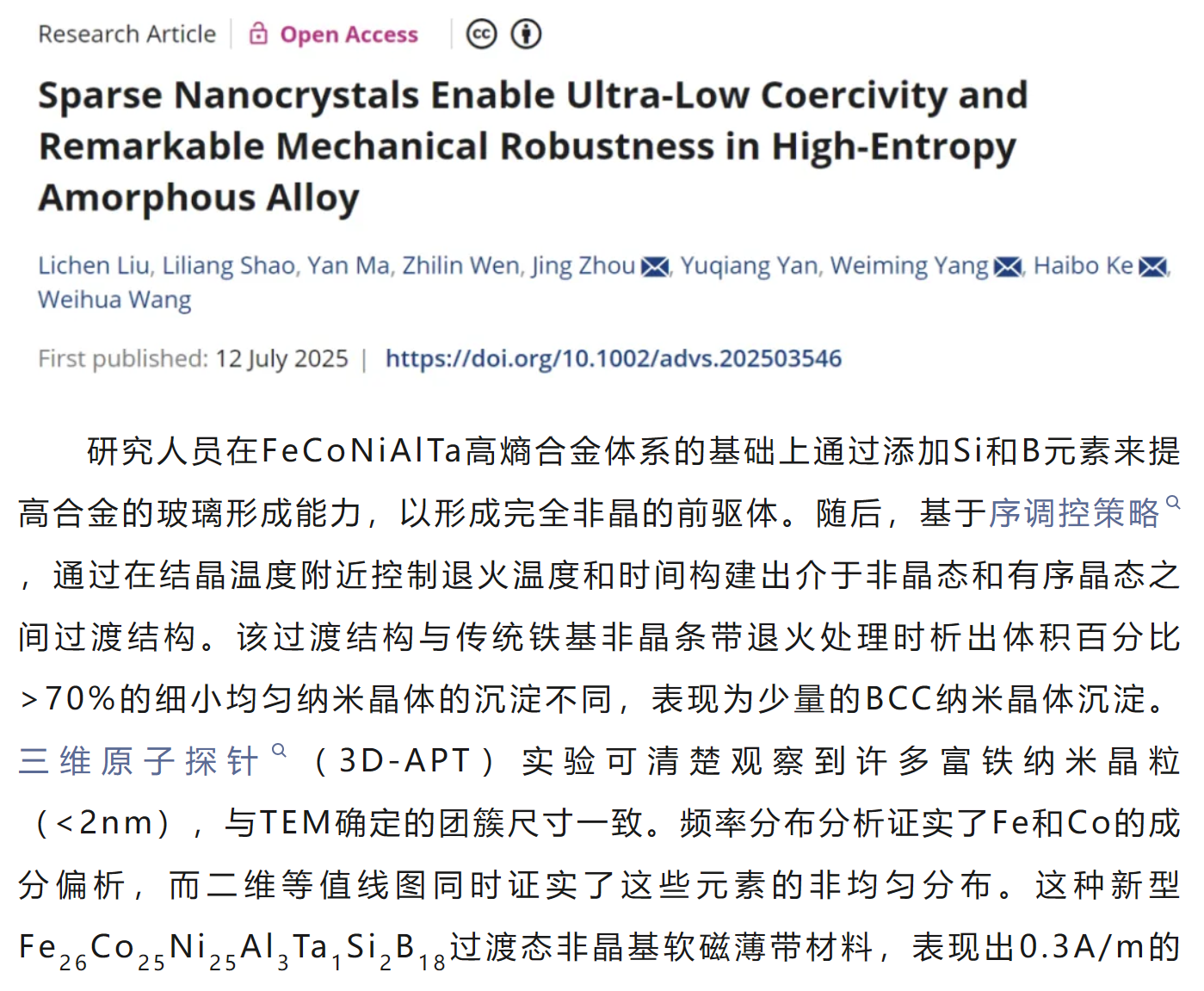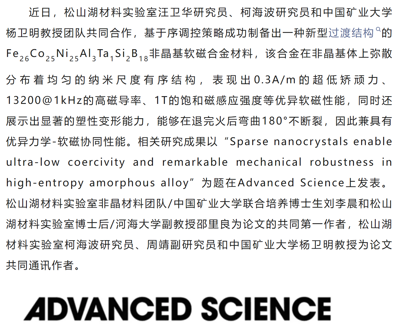 Adv. Sci|松山湖材料实验室工作:序调控策略开发兼具优异力/磁特性的非晶基软磁合金材料