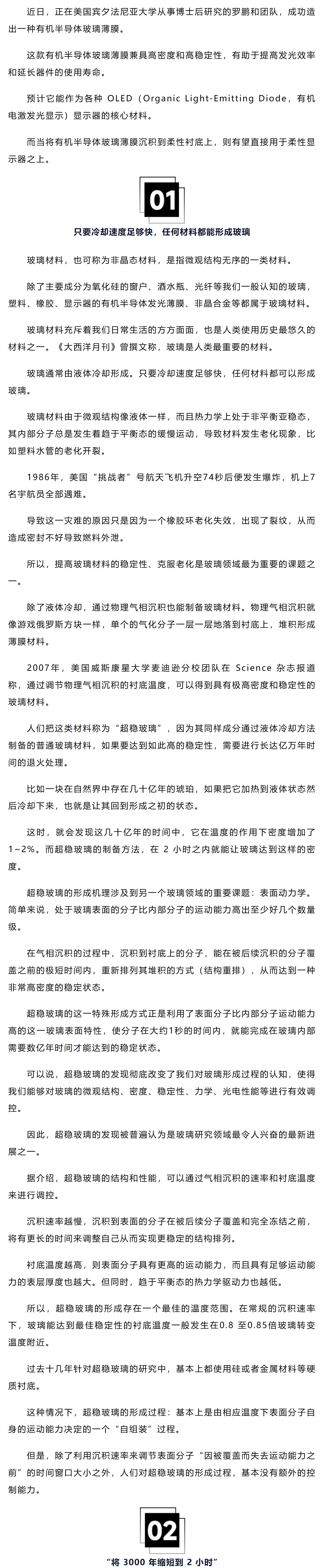 将3000年沉积过程缩至2小时,科学家造出有机半导体玻璃薄膜,能用于制备OLED显示器