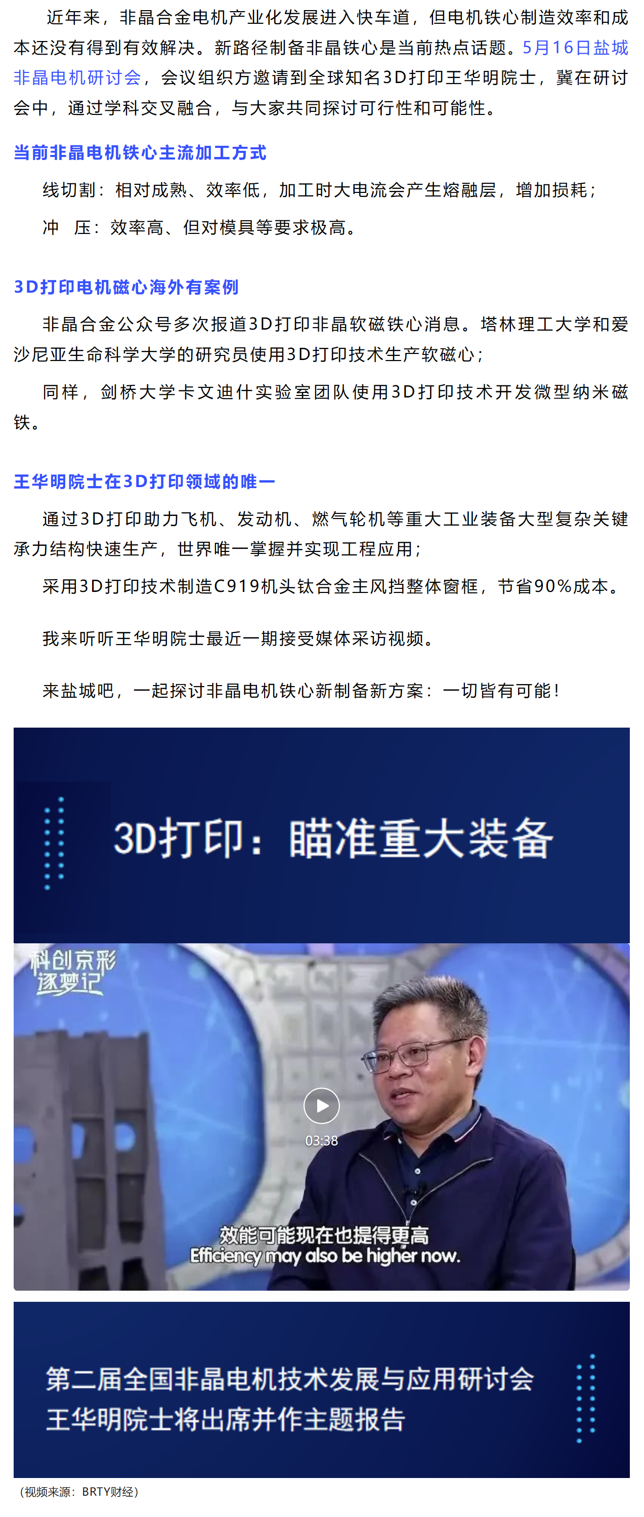 非晶电机铁心3D打印?来听听最有可能做到的院士说他们工程应用是如何实现的