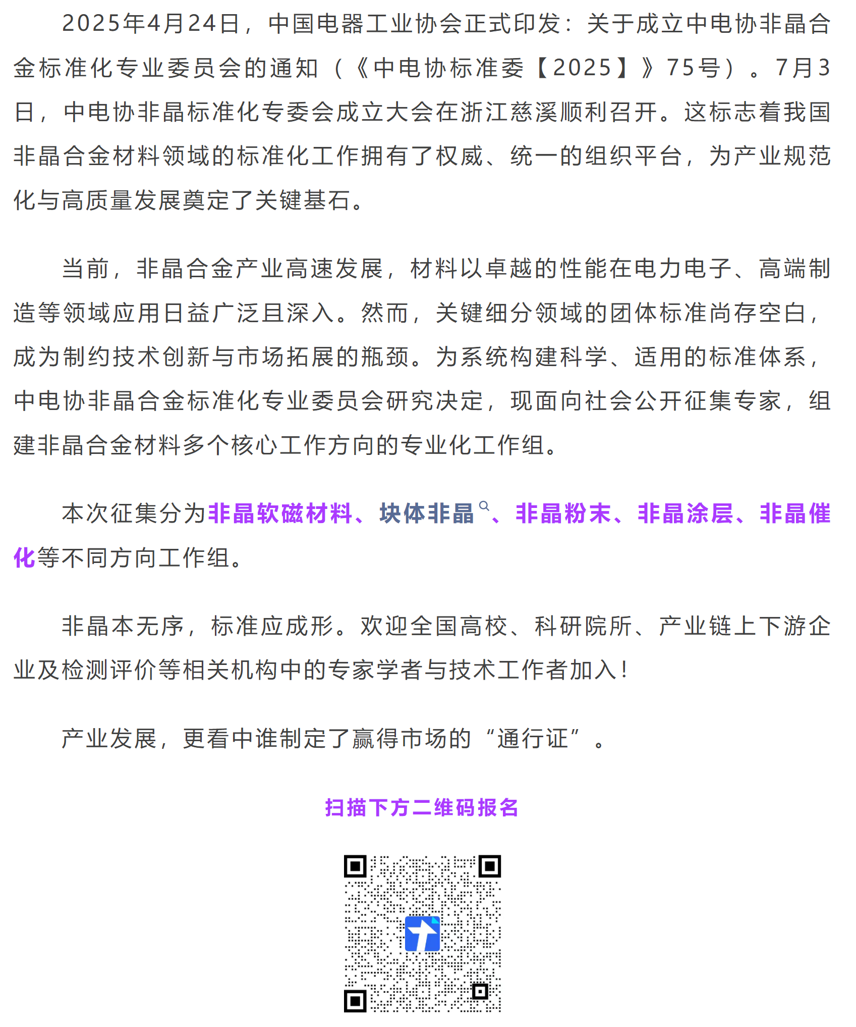 定标准者赢未来|中电协非晶合金标准化专业委员会面向社会征集专家