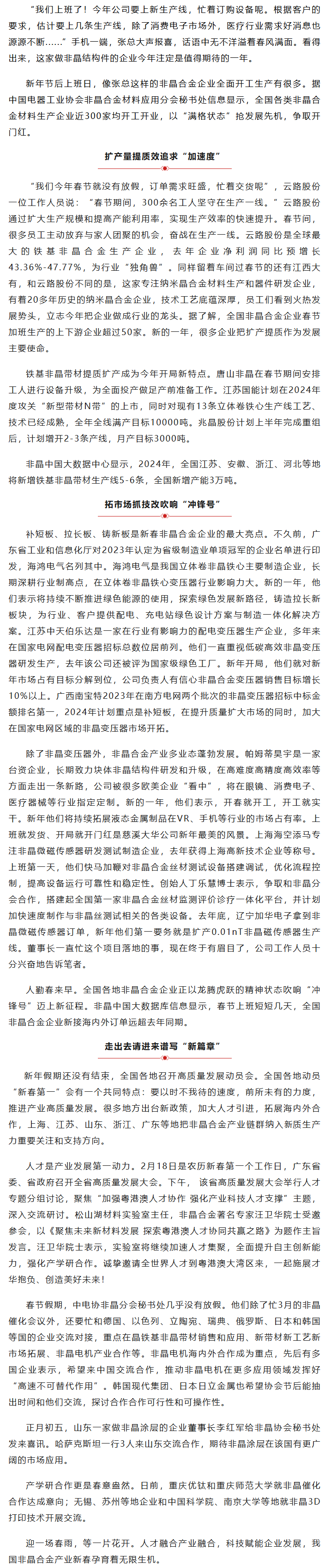 全国非晶合金企业“满格状态”忙生产开新局