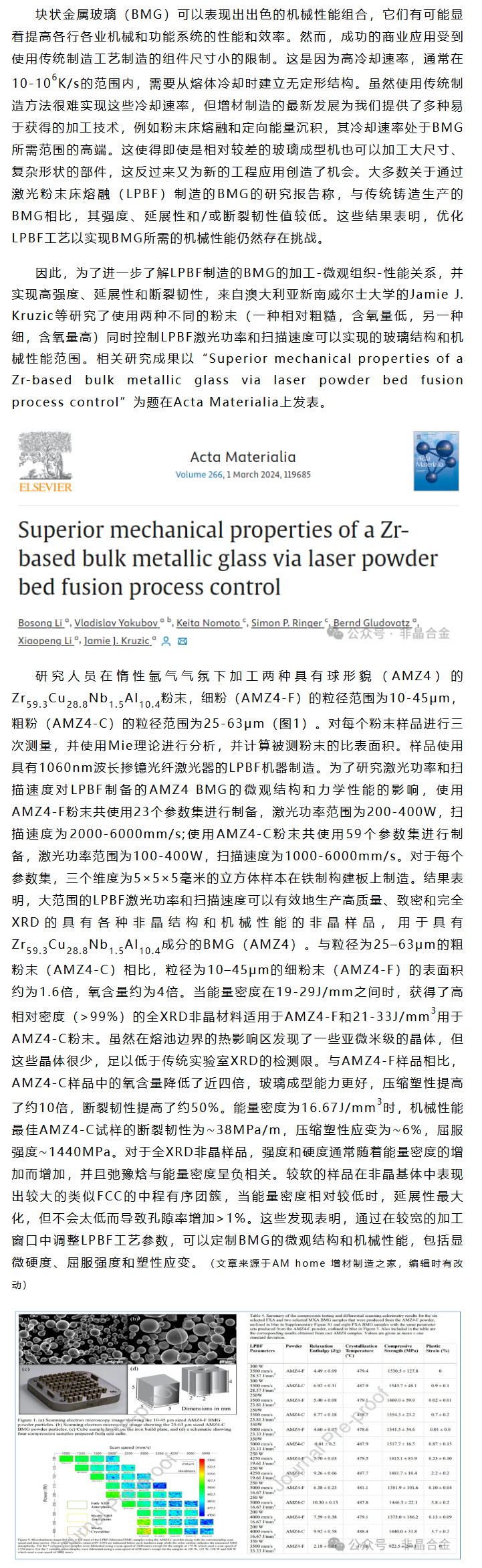 《ACTA MATER》Jamie J. Kruzic等工作:通过激光粉末床熔融工艺控制实现Zr基块状金属玻璃的机械性能