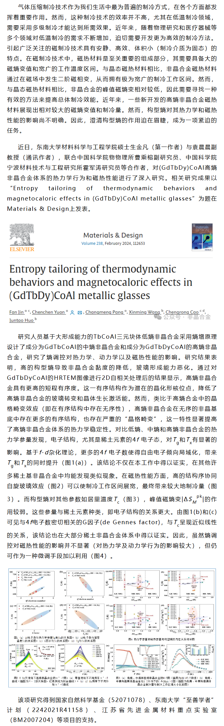 《MATER DESIGN》袁晨晨等工作:磁热高熵非晶合金的熵调控