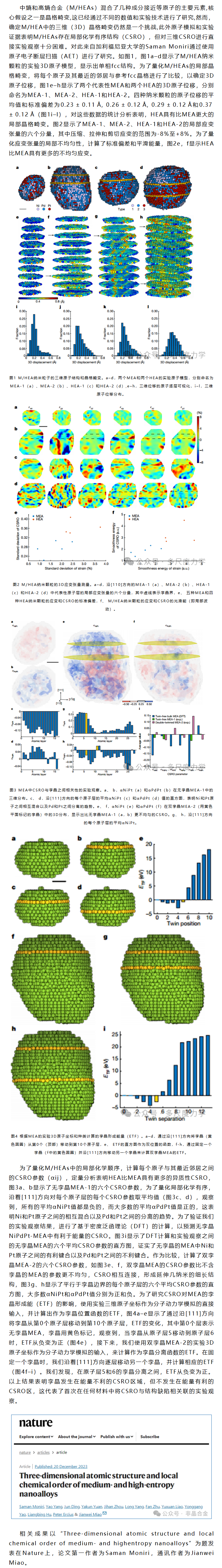 Nature:中高熵纳米合金的三维原子结构和局部化学有序