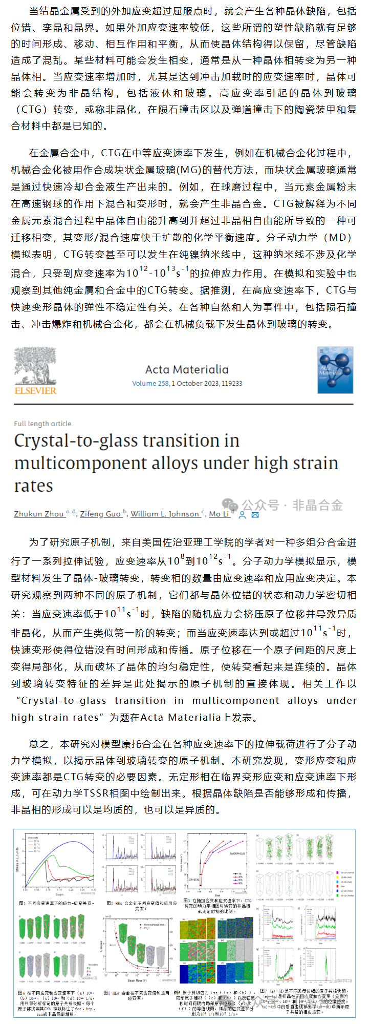 《ACTA MATER》李默等工作:高应变速率下多主分合金的非晶化转变!