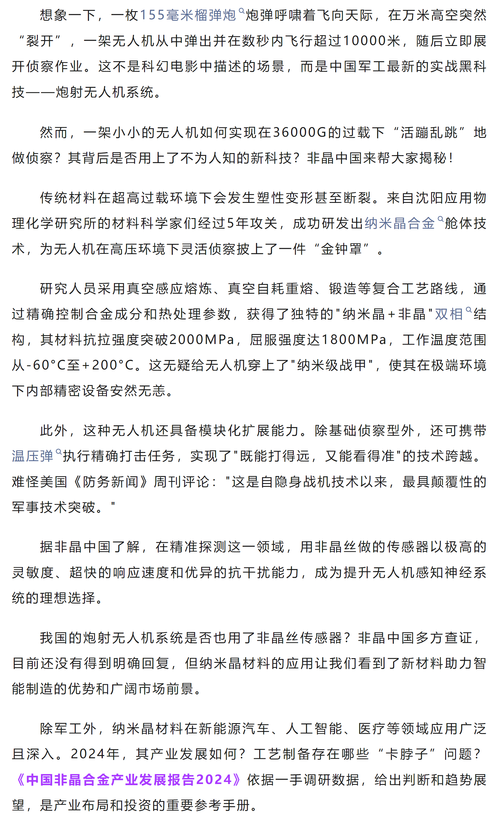 从大炮轰出的无人机为啥还能“活蹦乱跳”做侦察?竟然是纳米晶合金一一