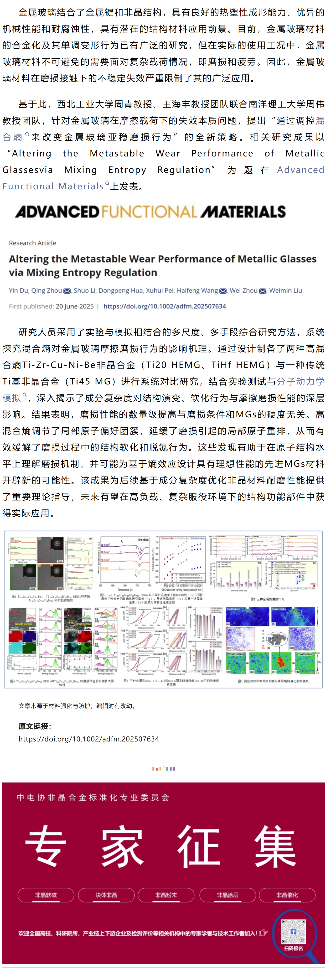 AFM|周青等工作:高混合熵赋能非晶合金耐磨性能,揭示成分复杂度对金属玻璃摩擦行为决定性作用