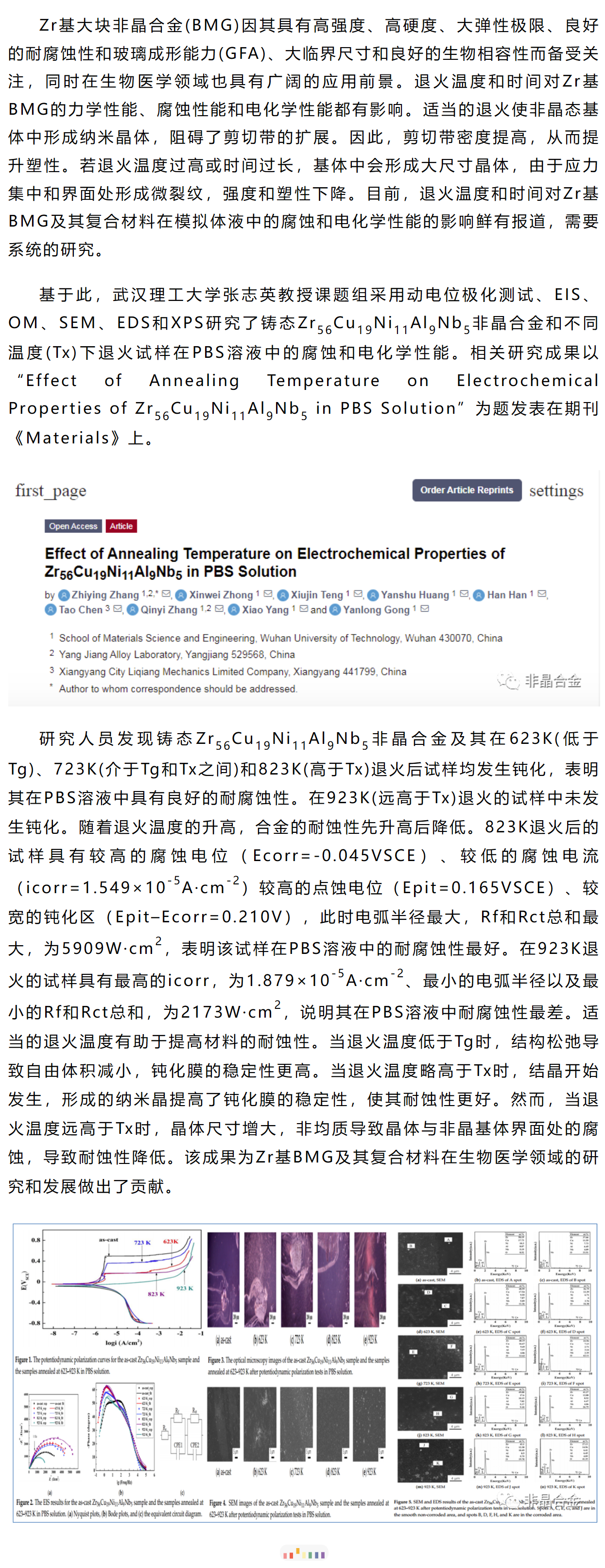 《MATERIALS》张志英等工作:退火温度助力提升Zr基非晶合金电化学性能!