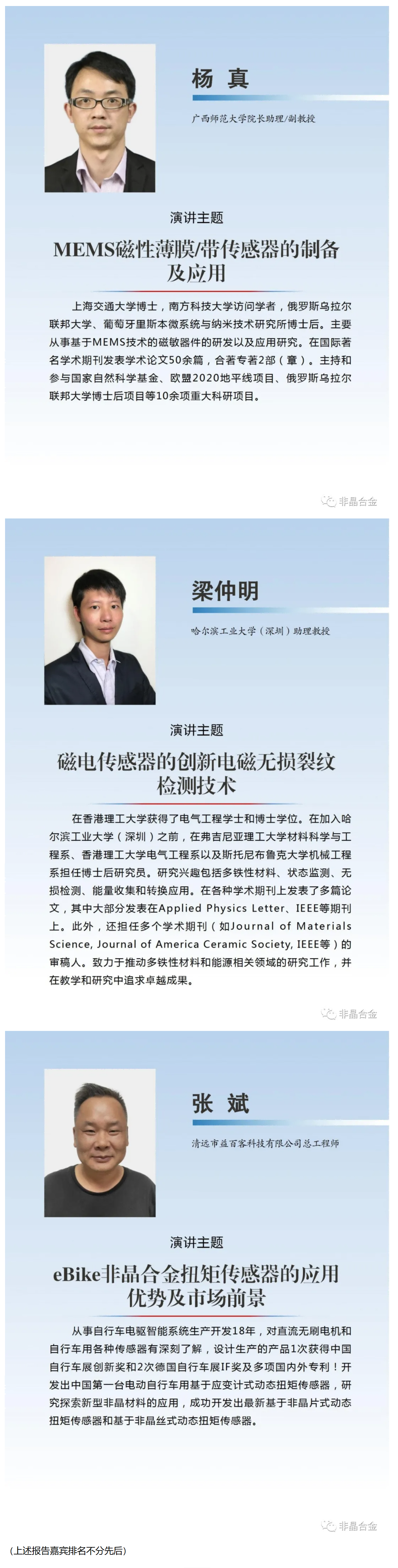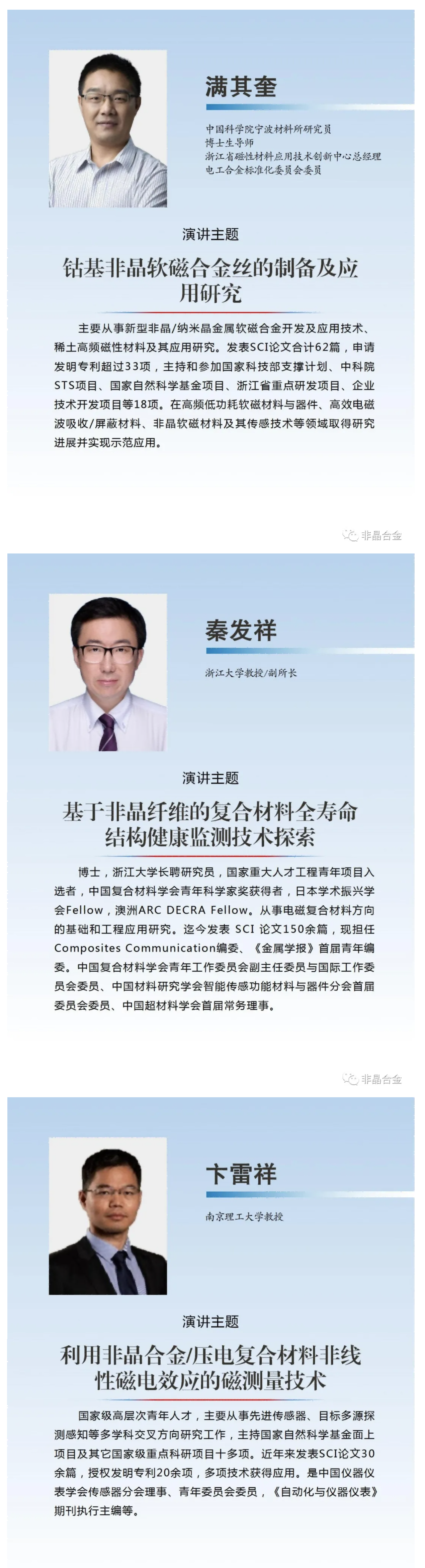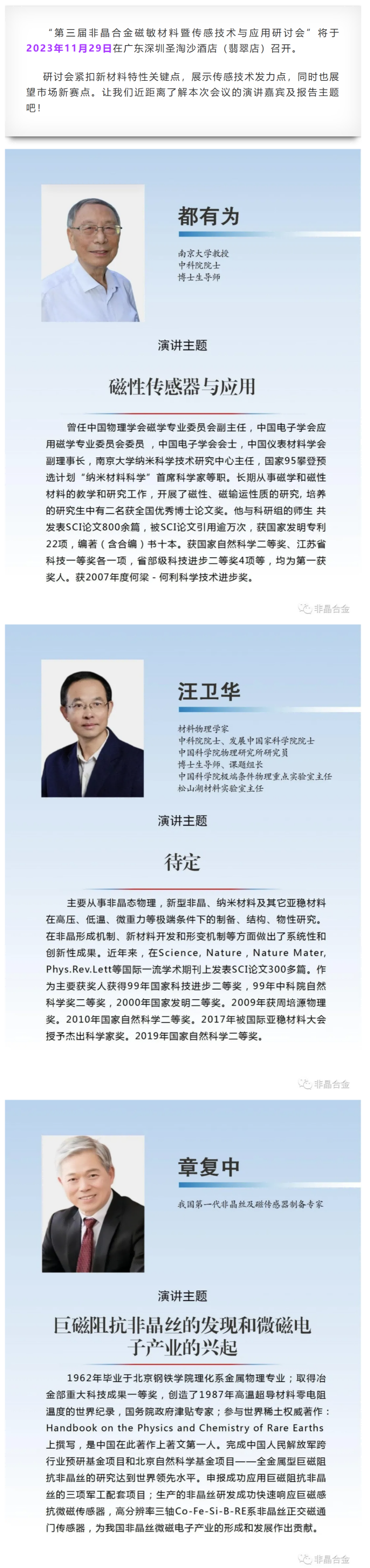 大咖来了丨第三届非晶合金磁敏材料暨传感技术与应用研讨会嘉宾简介及主题