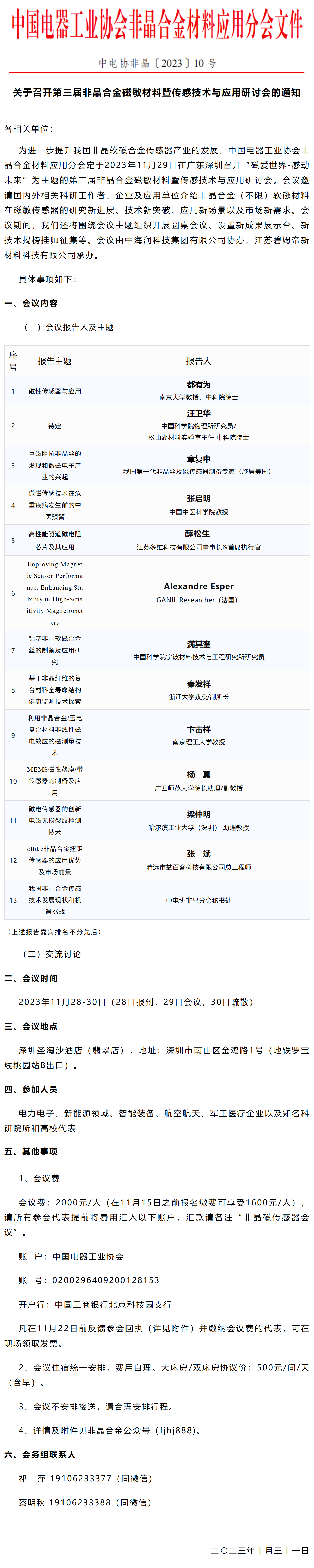 关于召开第三届非晶合金磁敏材料暨传感技术与应用研讨会的通知