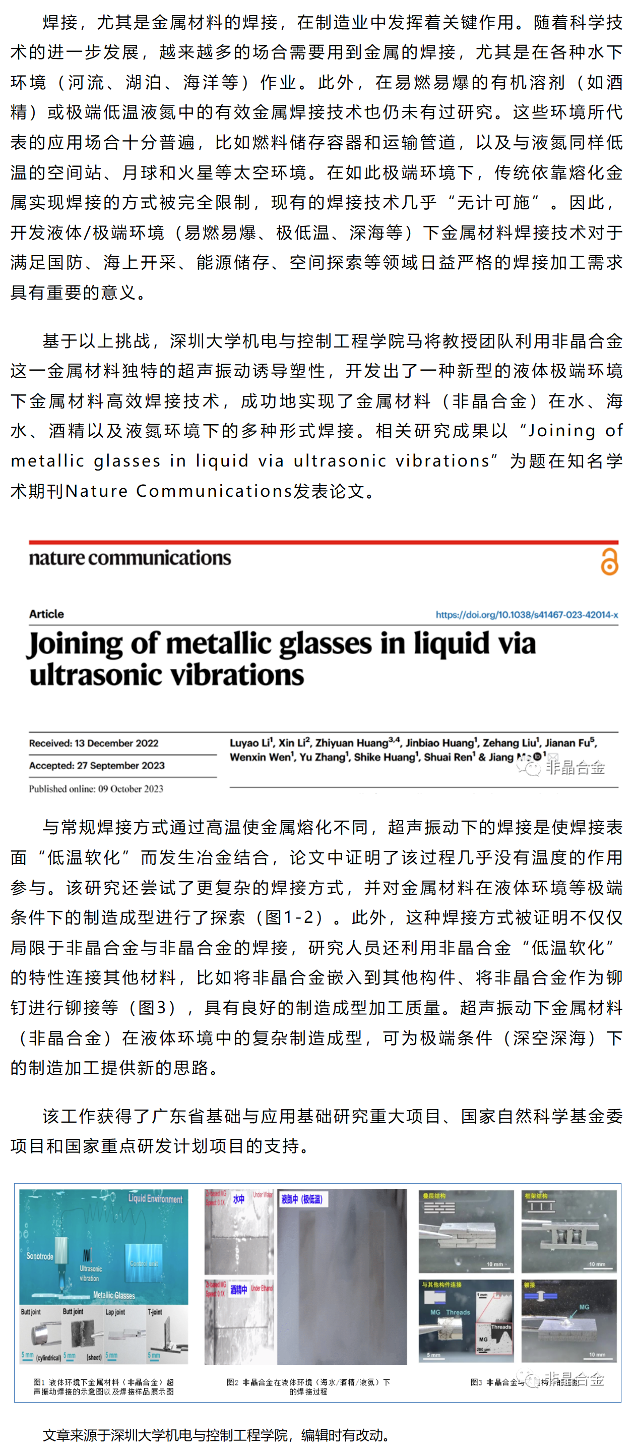 《Nat. Commun.》马将等工作:一种液体环境下金属焊接新技术