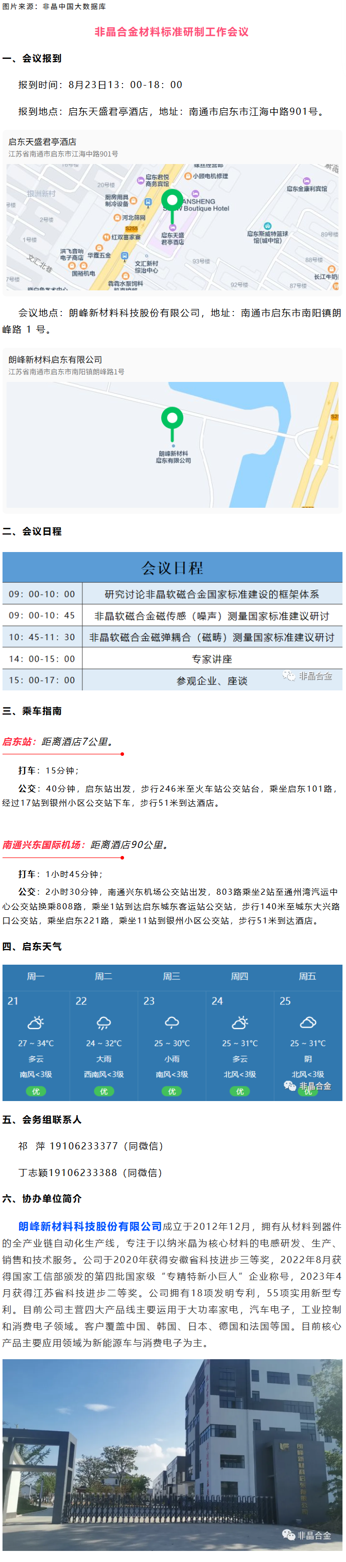 23日报到 | 非晶合金材料标准研制工作会议将在启东召开