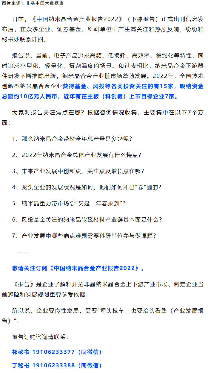 产业报告导读:去年纳米晶合金10亿元资金涌入是做“蛋糕”还是“蛋卷”?上市真的进入快车道?