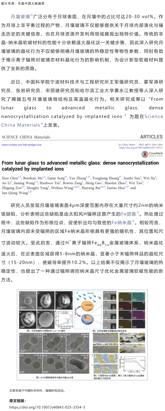 SCMs|从月壤玻璃到先进金属玻璃材料——离子辐照诱导致密纳米晶化