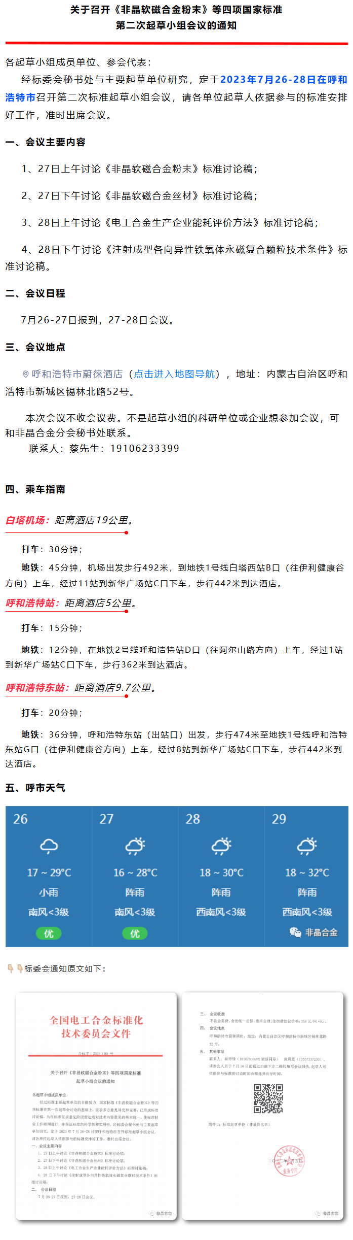 相约呼和浩特 | 非晶合金粉、丝等国家标准起草组会将召开