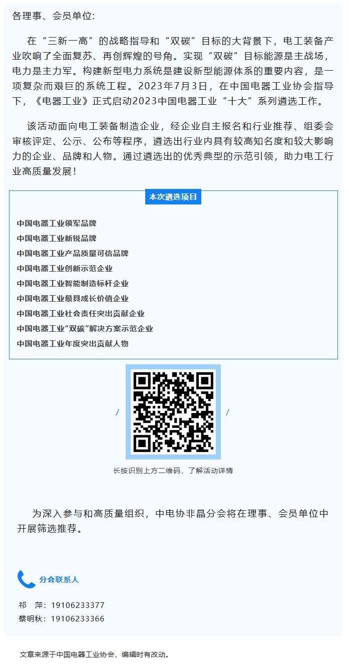 2023中国电器工业“十大”系列遴选工作正式启动!
