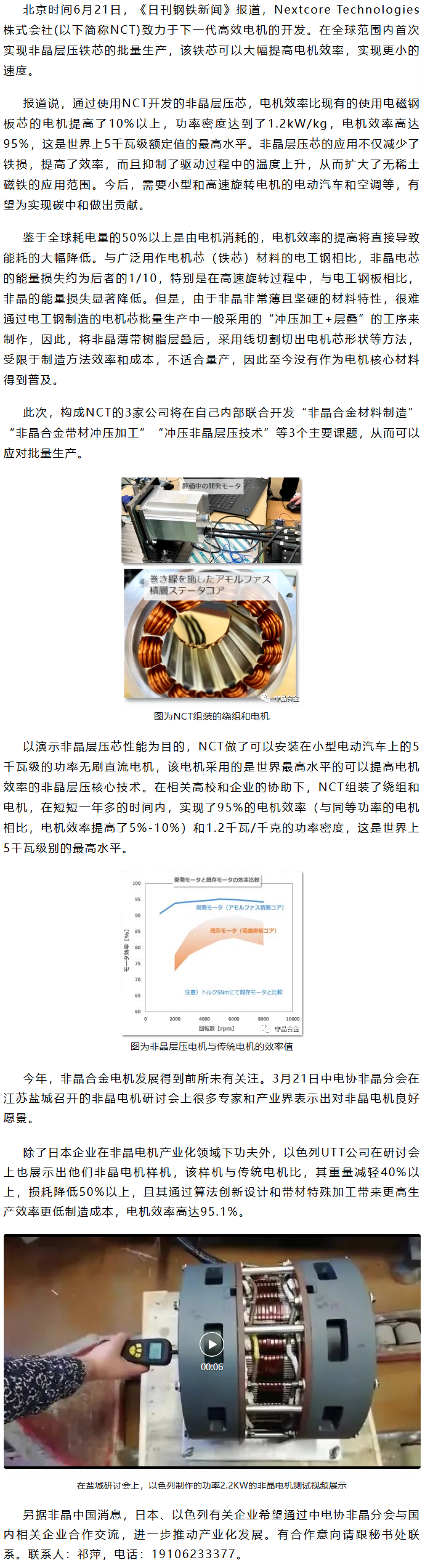 日媒报道:采用叠加冲压非晶铁心的高效电机全球首次实现量产