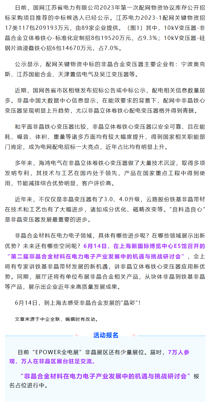 19520万!国网江苏2023配网第一标 ,非晶合金立体卷铁心变压器占比超过硅钢铁心变压器