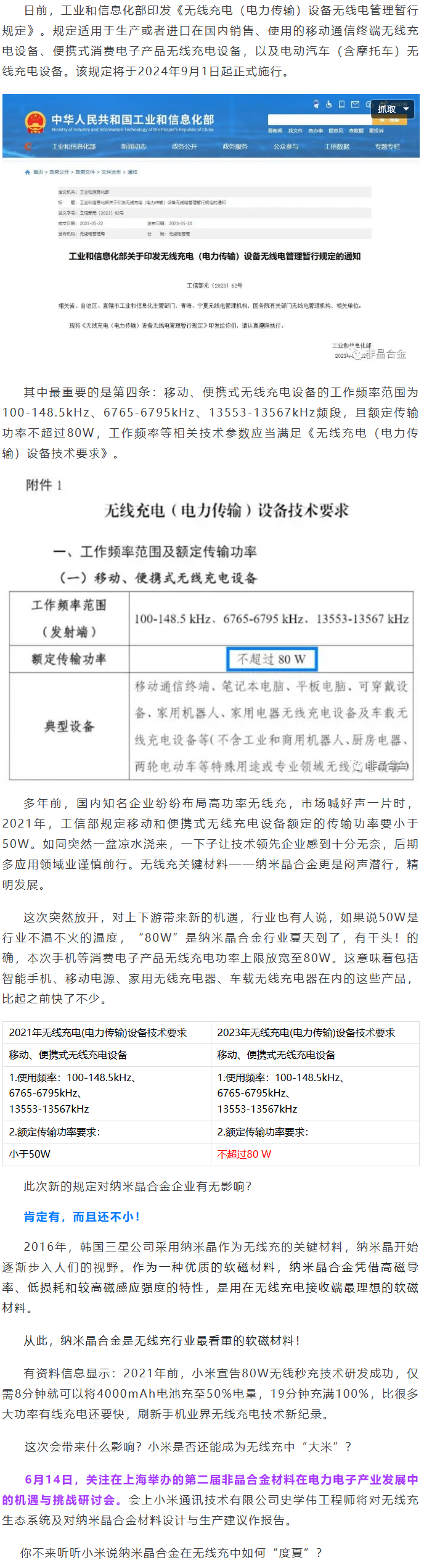 无线充有情况!工信部新规给纳米晶合金带来什么?到上海听小米说如何“度夏”