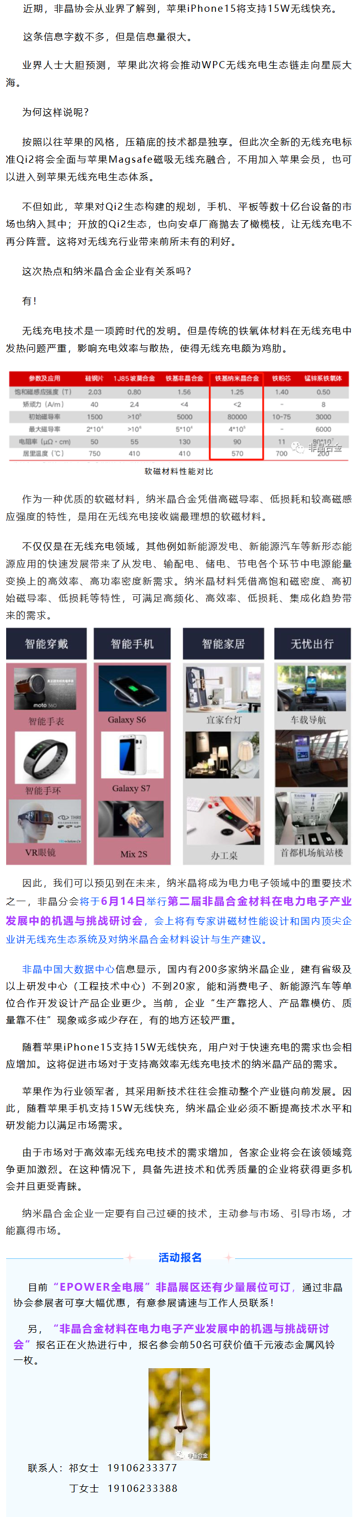 苹果15将开放无线快充,纳米晶市场热度预骤升