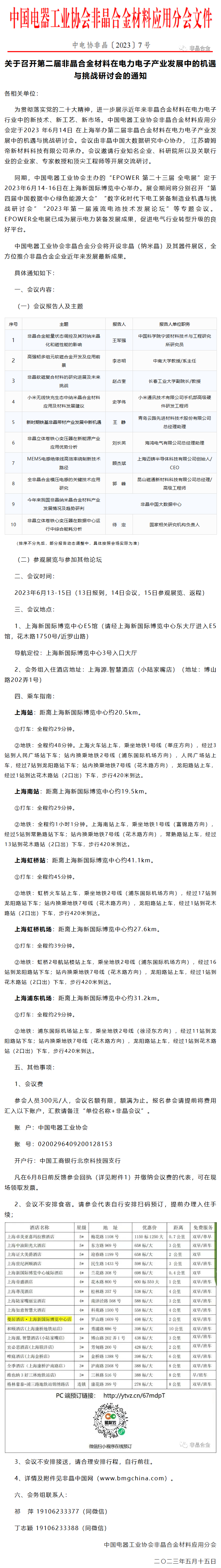 专家及主题报告确定了!第二届非晶电力电子产业研讨会6月14日在上海召开