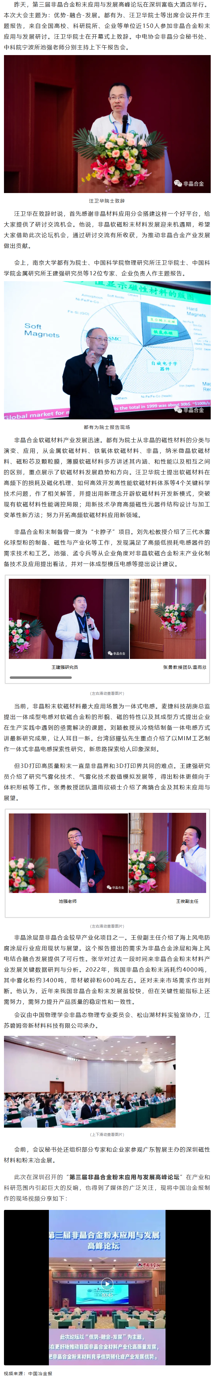 第三届非晶合金粉末应用与发展高峰论坛在深圳召开