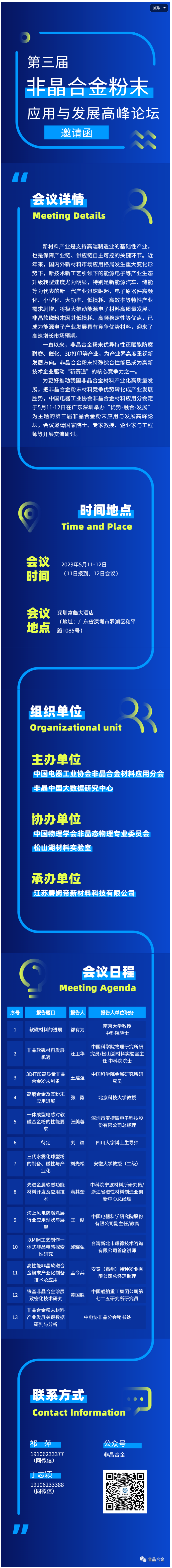 会议邀请丨第三届非晶合金粉末应用与发展高峰论坛将在深圳召开