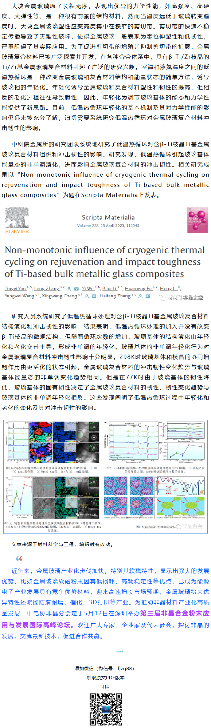 《SCRIPTA MATER》张龙等工作:低温热循环对大块金属玻璃复合材料年轻化和冲击韧性影响