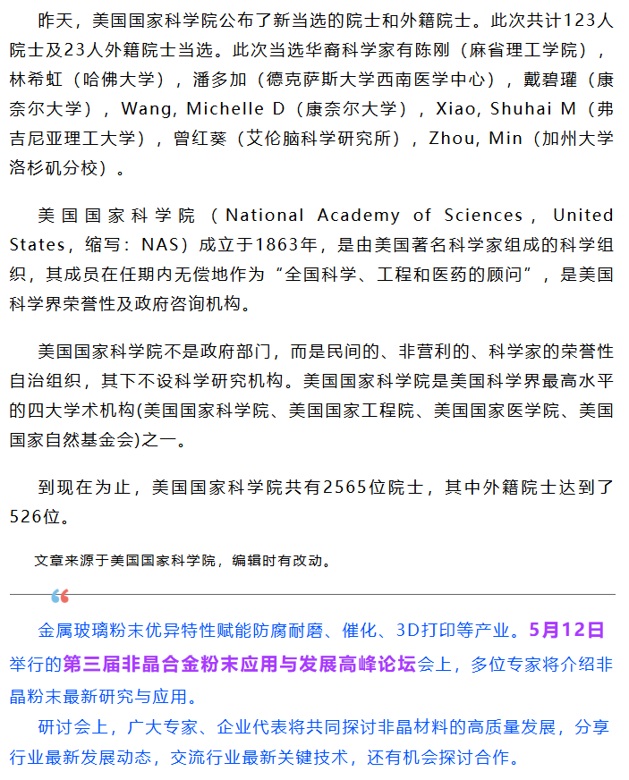美国国家科学院公布新当选院士名单:陈刚、林希虹、潘多加等多位华人入选