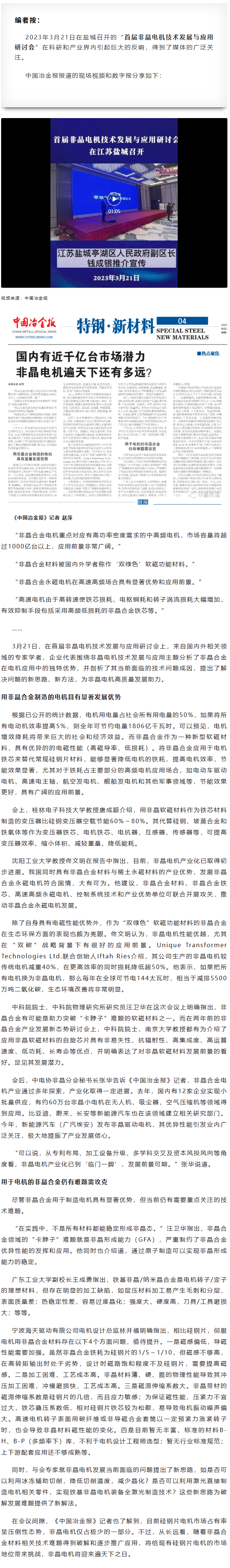 中国冶金报:国内有近千亿台市场潜力,非晶电机遍天下还有多远?