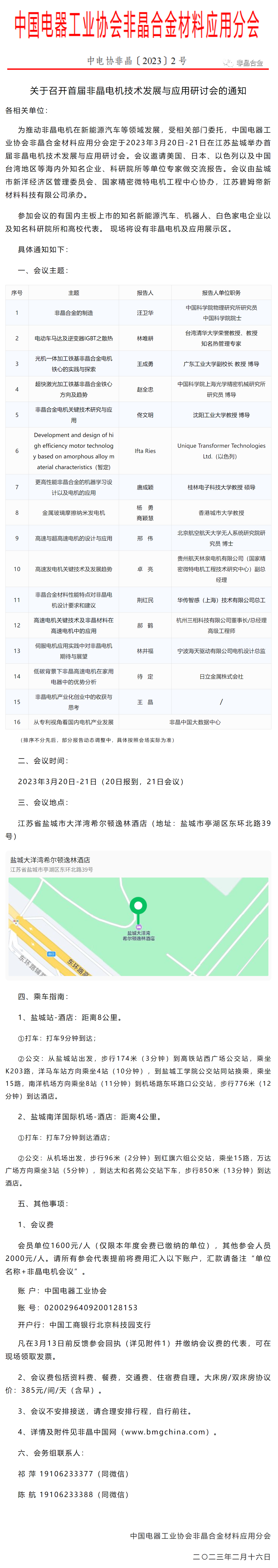 专家及报告确定了!首届非晶电机研讨会3月21日在江苏盐城召开