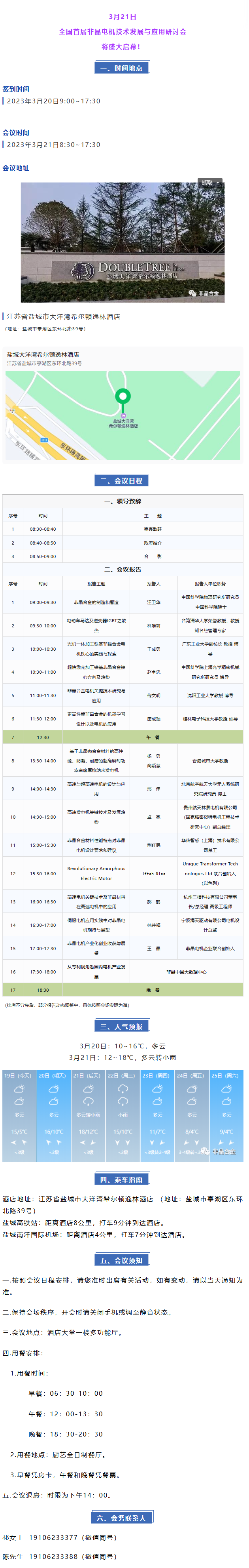 参会指南 | 全国首届非晶电机研讨会准备就绪