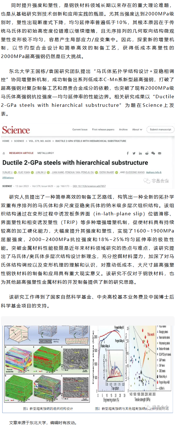 副理事长袁国Science发文:超高强钢领域实现新突破!