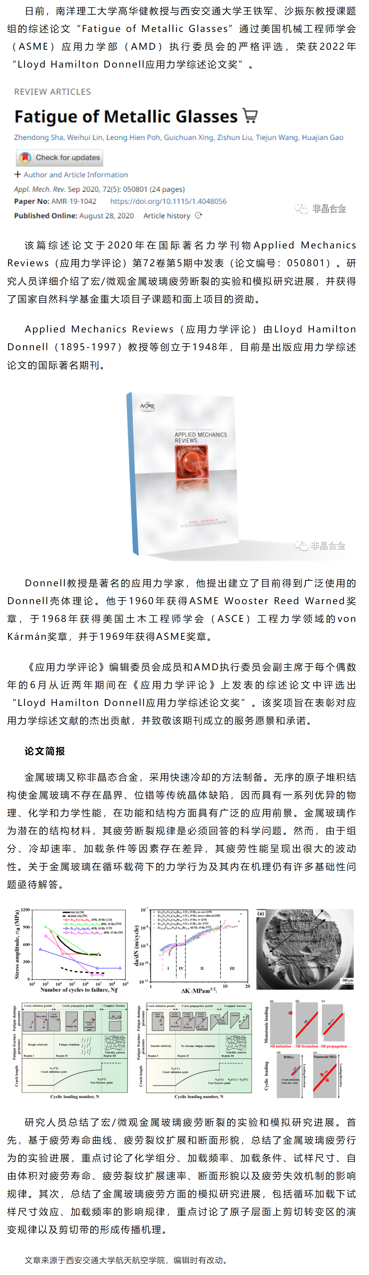 沙振东课题组荣获2022年“Lloyd Hamilton Donnell应用力学综述论文奖”