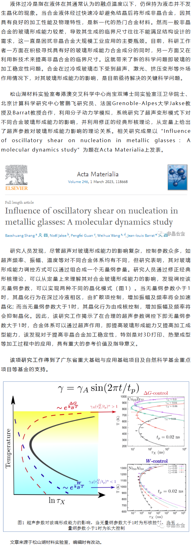 《Acta Materialia》尚宝双等工作:超声对合金玻璃形成能力的影响机制研究