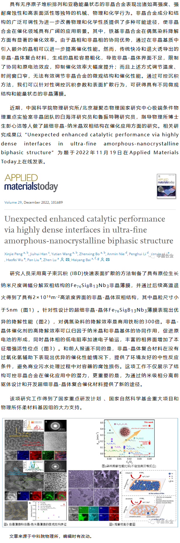 《Applied Materials Today》白海洋、鲁振等工作:超细非晶-纳米晶双相结构实现金属玻璃优异偶氮染料降解特性
