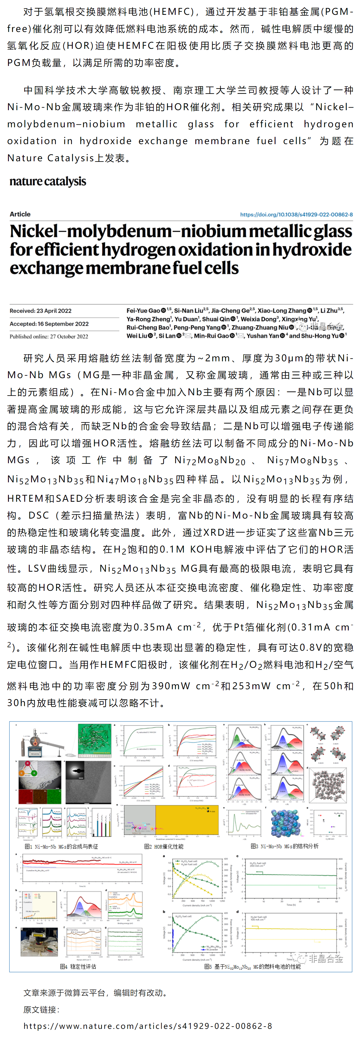 《Nature Catalysis》高敏锐、兰司等工作:一种Ni-Mo-Nb金属玻璃作为非铂的HOR催化剂