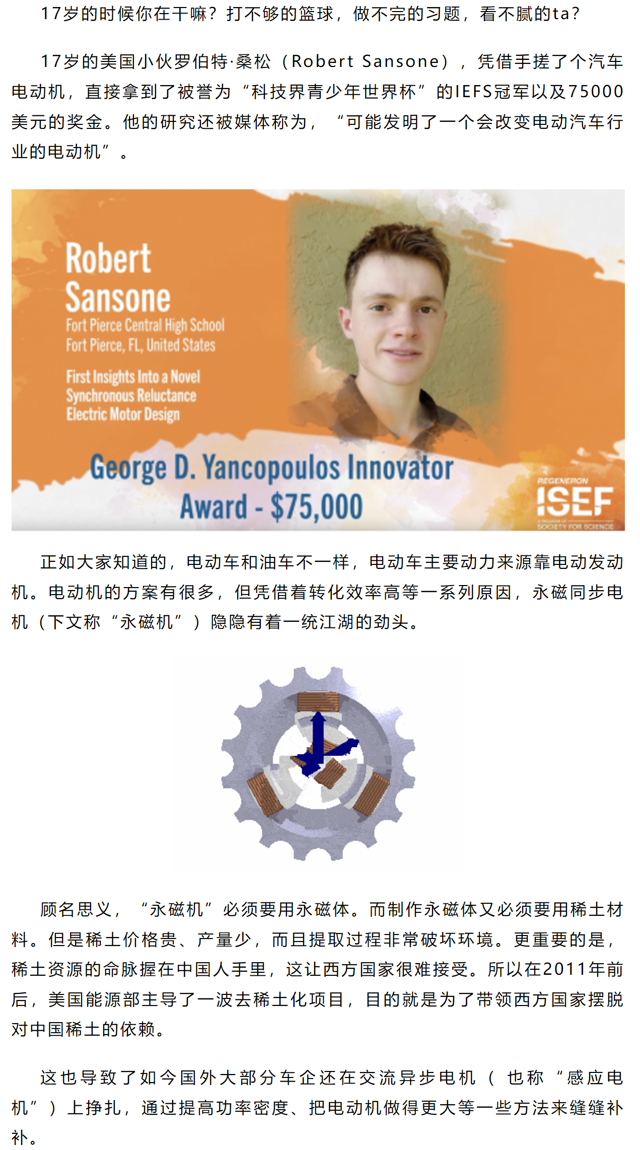 嗨,桑松!你今年17岁?你的这个研究,可能要引发电动汽车革命