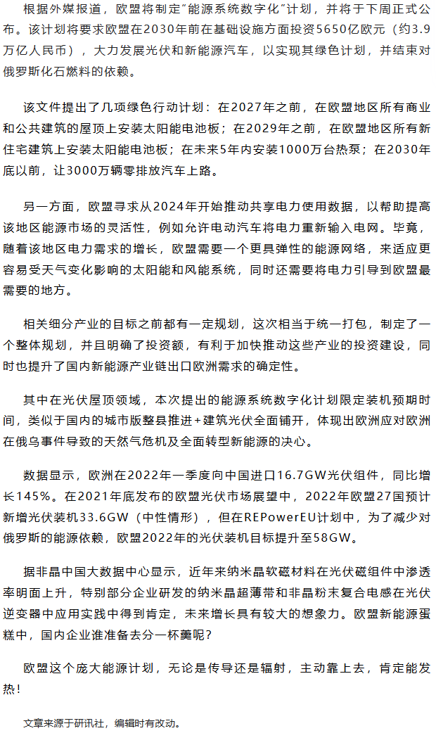 欧盟3.9万亿新能源计划即将发布,中国非晶合金软磁材料能否跟着发热吗?