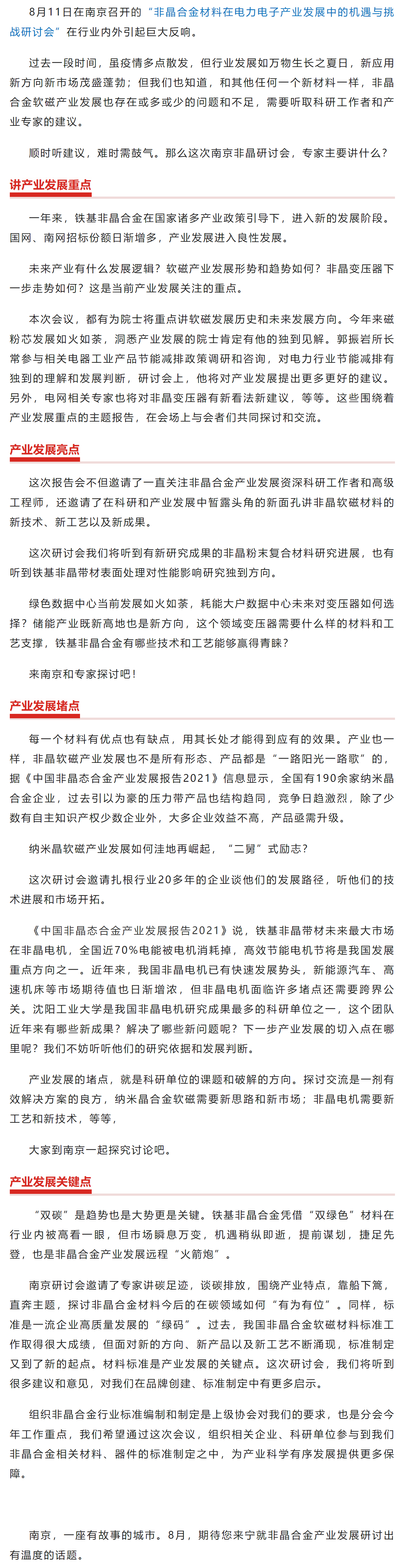 南京的八月非晶合金研讨会专家会讲什么?