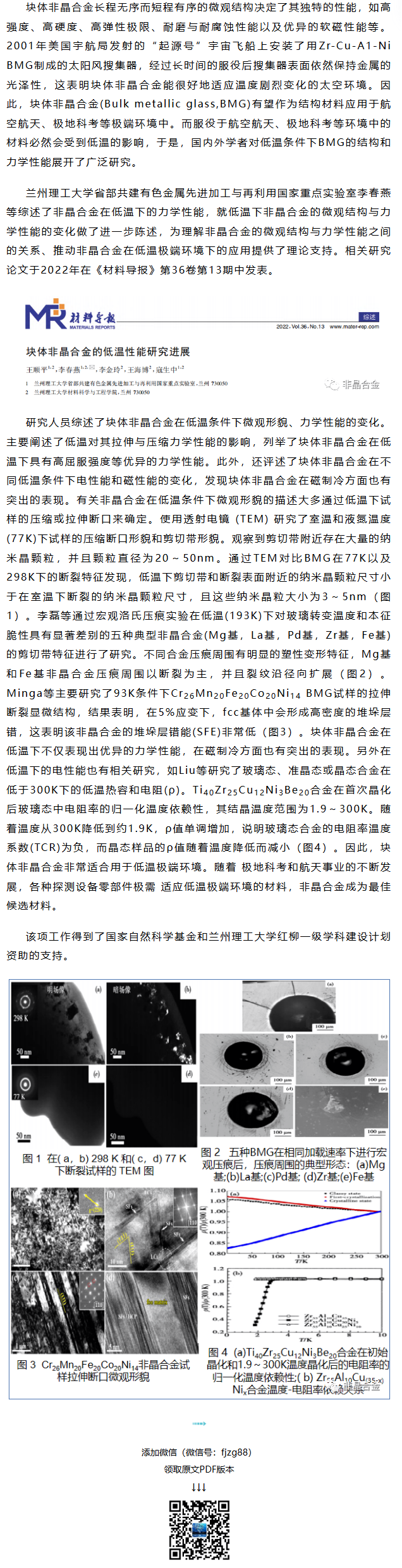 《材料导报》李春燕等工作:块体非晶合金的低温性能研究进展